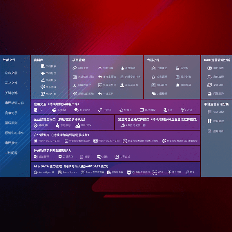 医疗器械产品上市前,,,要熟悉严格与繁复评审标准,,,整理分析监管机构指导文件中的海量信息。。。企业急需一个智能化解决方案,,,,提升知识管理效率,,,,提高评审通过率,,,以提升其市场竞争力。。